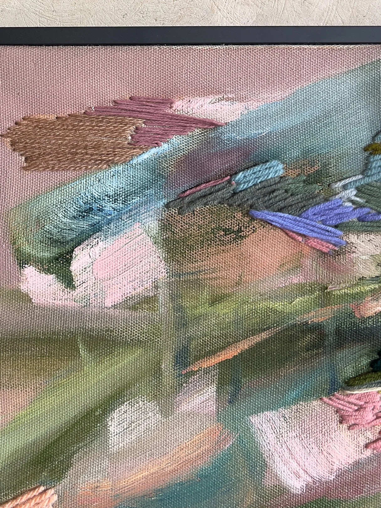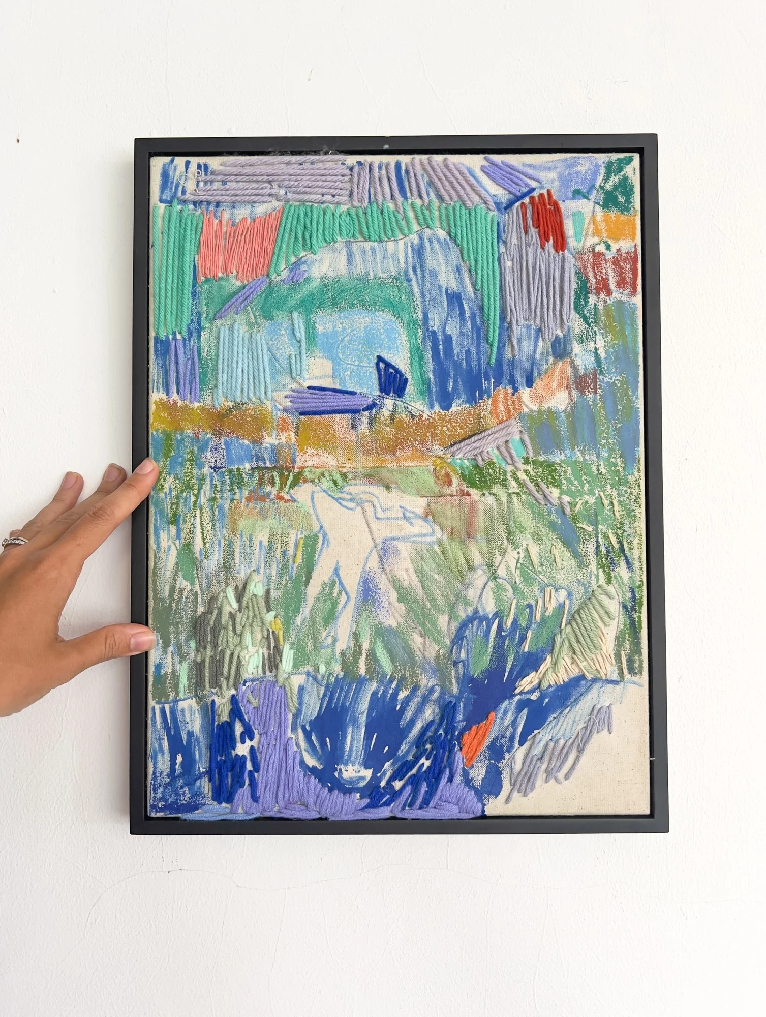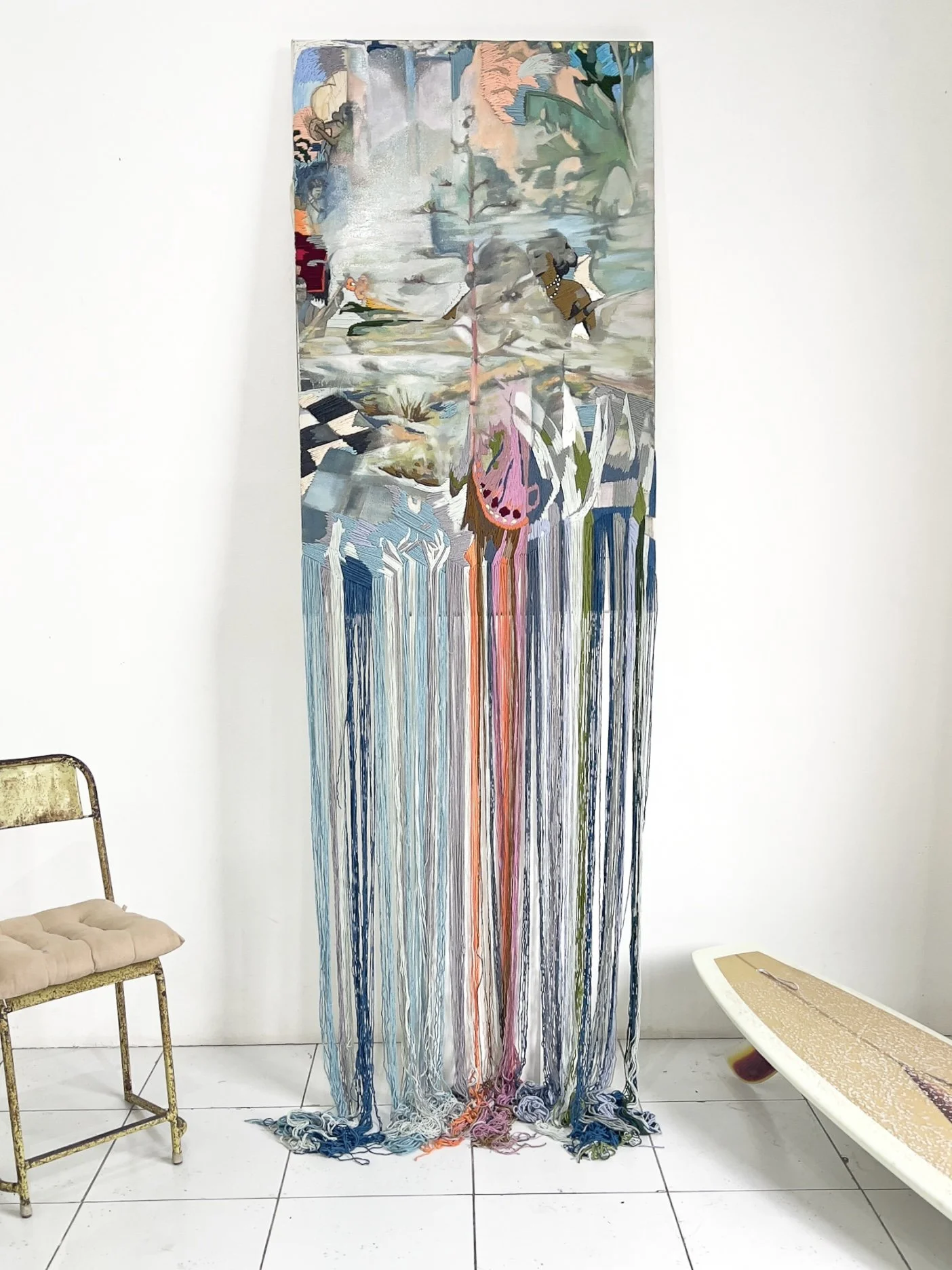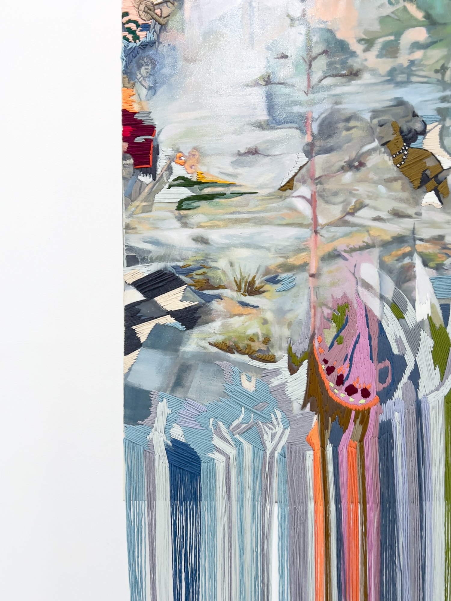 Oil, Oil Pastel, Acrylic Pen, Acrylic and Wool Yarn on Linen