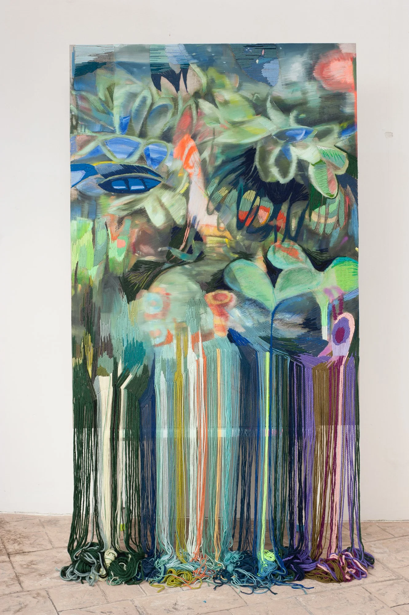 Oil, Cotton and Acrylic Yarn on Canvas