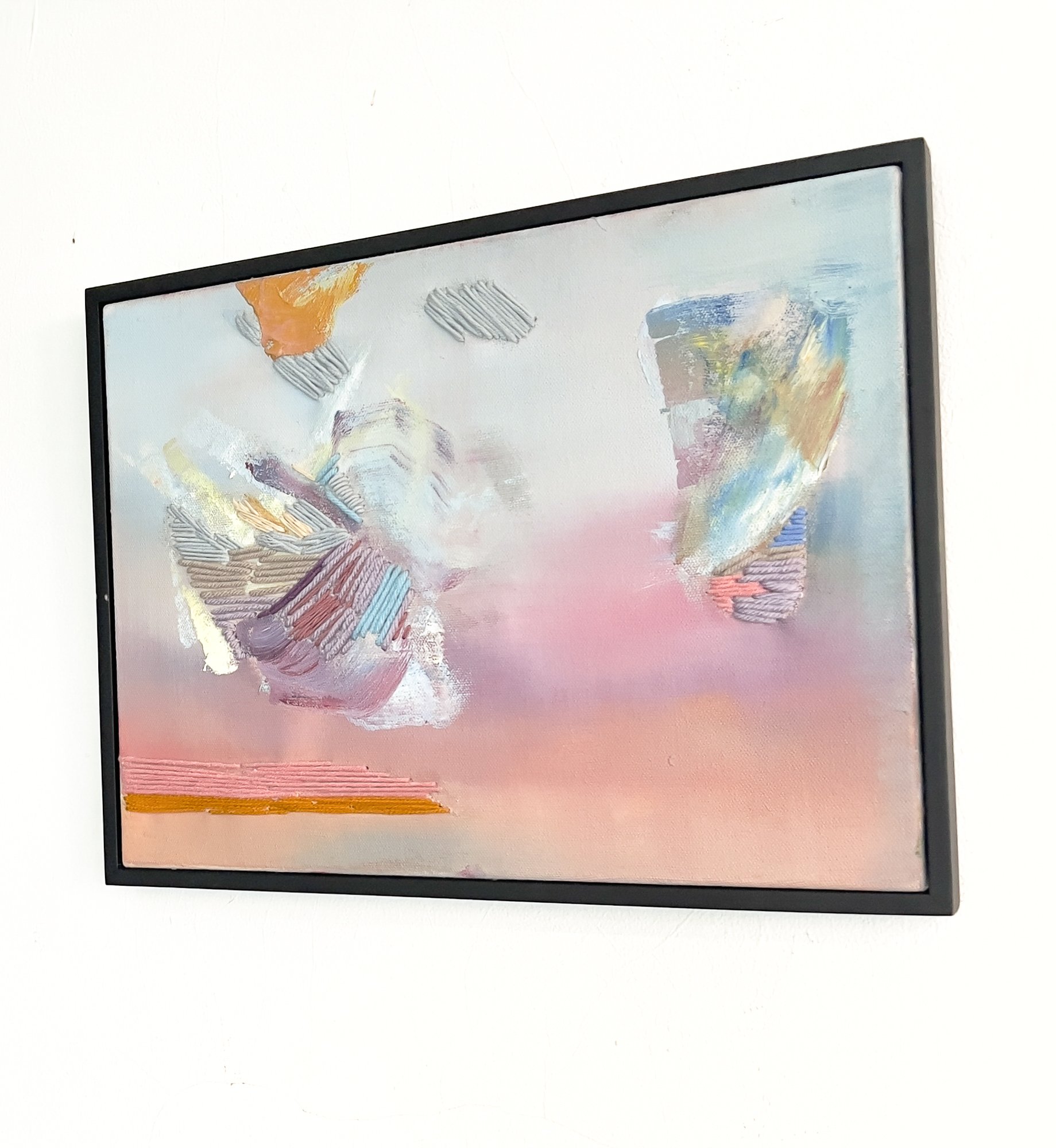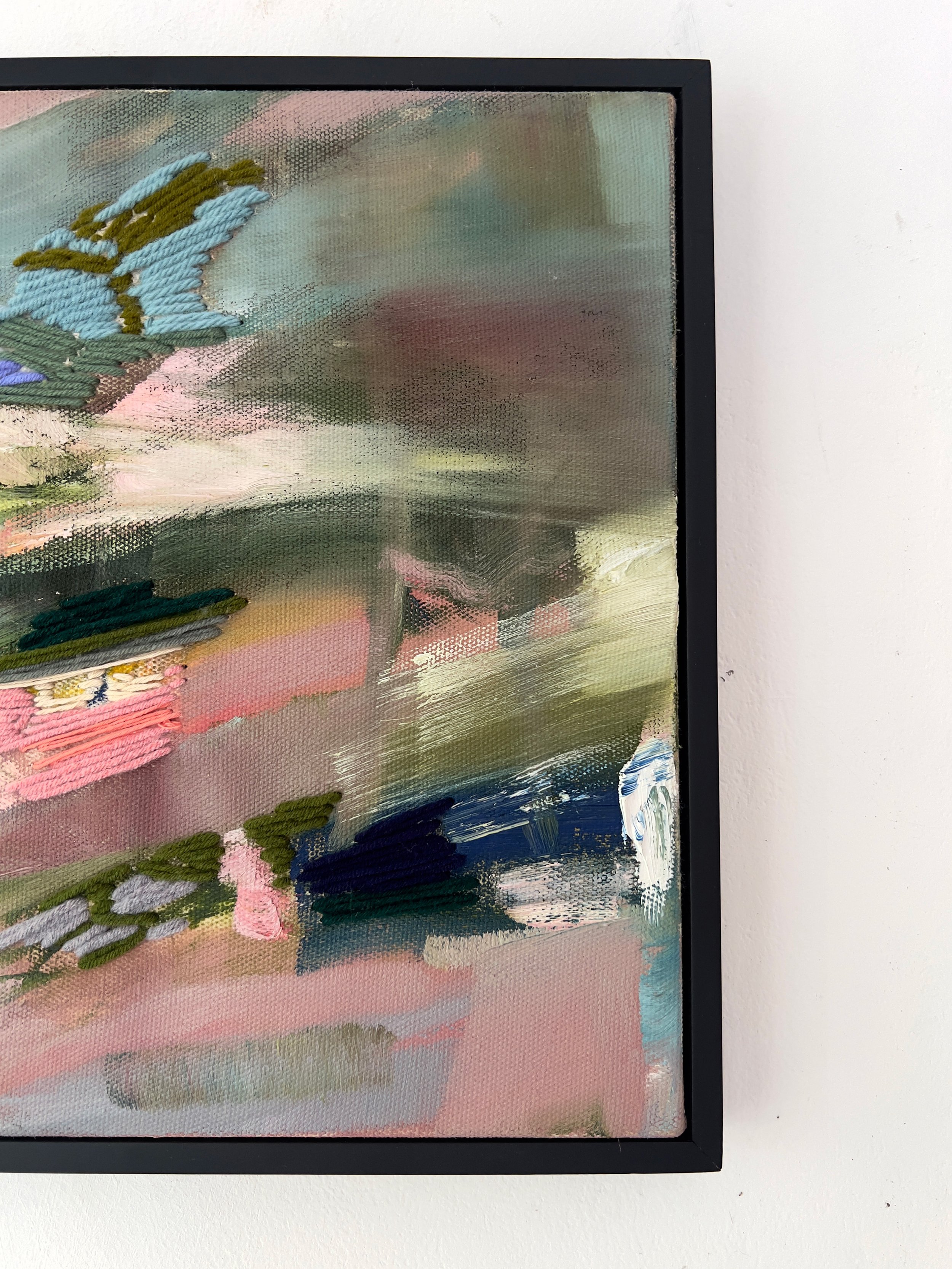 Oil, Oil Pastel, Cotton and Acrylic Yarn on Canvas