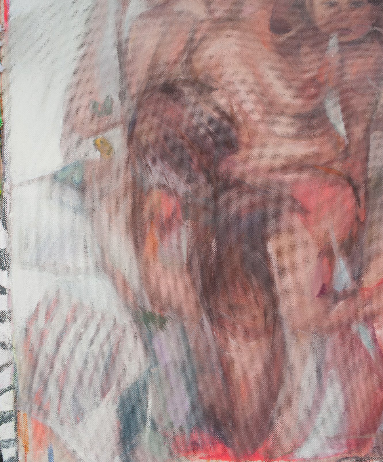 Oil, Oil Pastel, Spray Paint, Acrylic and Wool Yarn on Linen