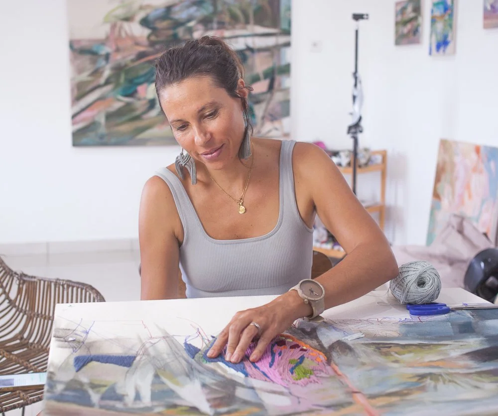 Athena Anastasiou is the Art Director of Sol Veritas Studios and a multidisciplinary artist creating large-scale oil paintings that move between realism and abstraction, integrating textile weaving as both material and metaphor to explore identity, transformation, and our relationship with nature.