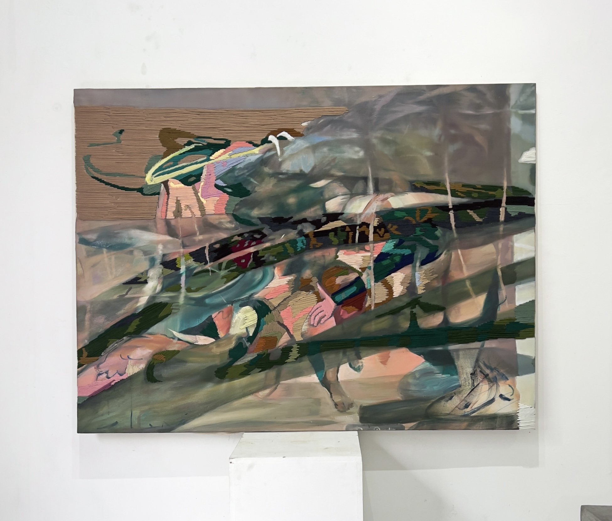 Oil, Acrylic Pen, Cotton & Acrylic Yarn on Canvas