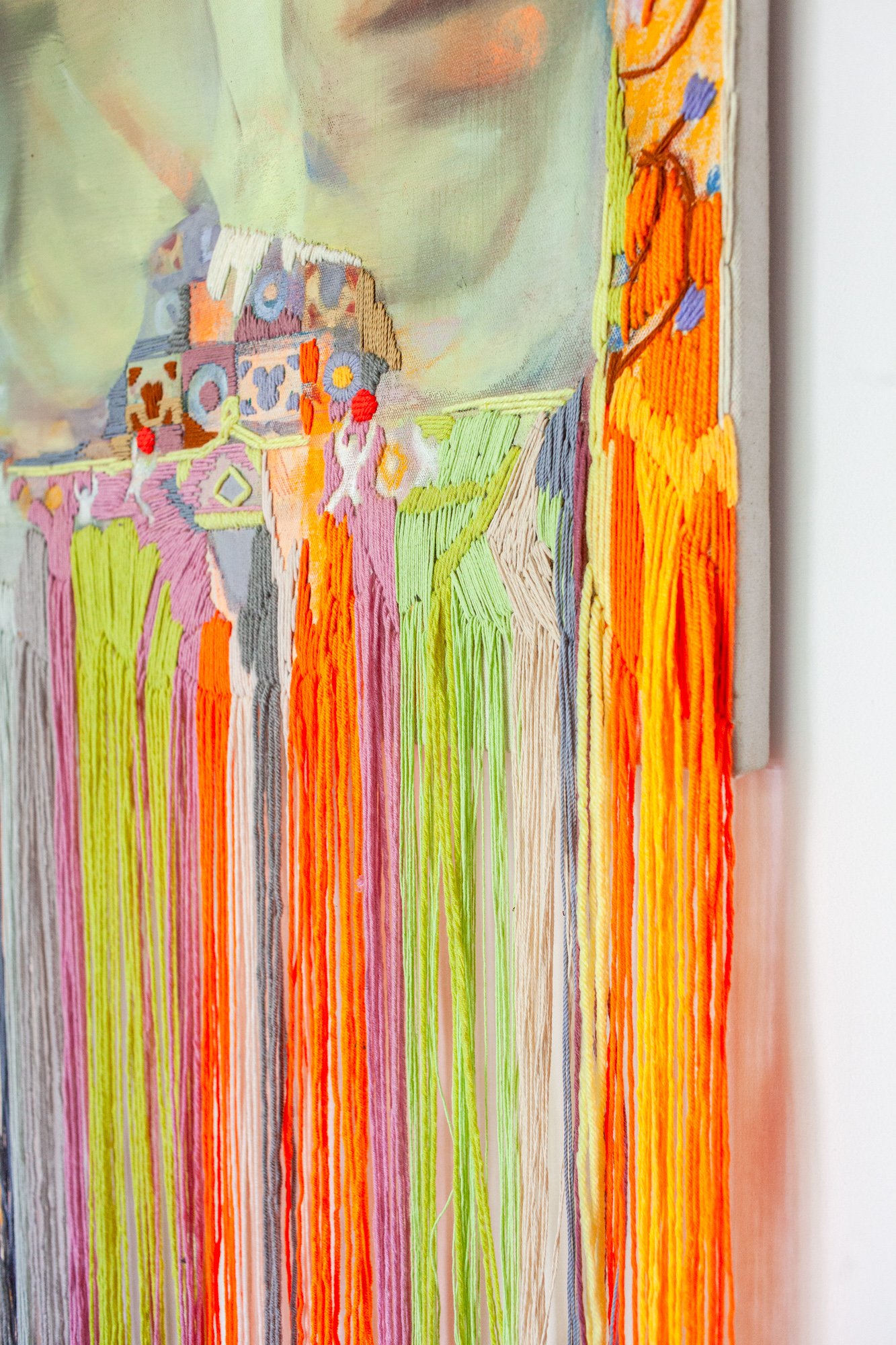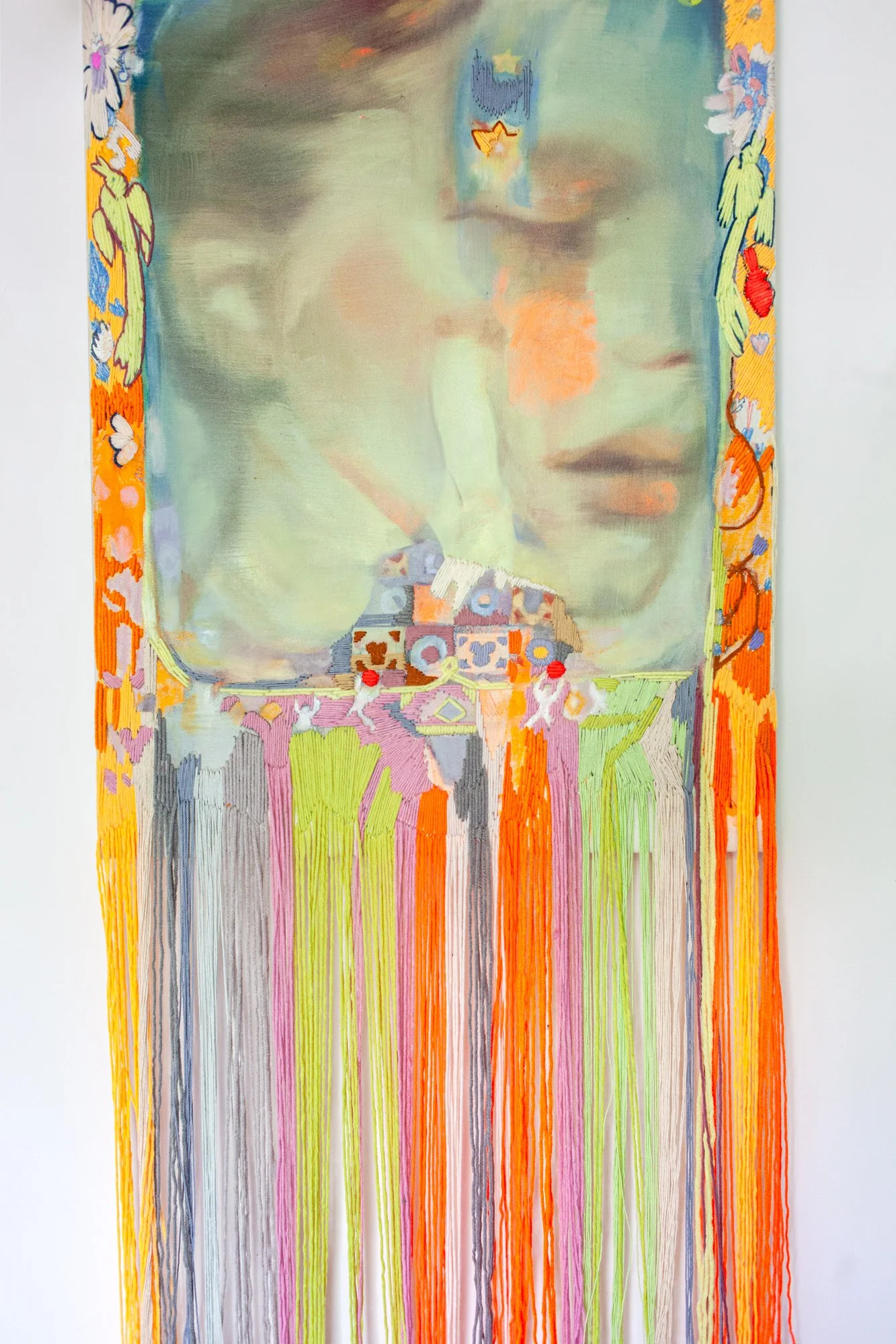 Oil, Acrylic Pen, Cotton & Acrylic on Canvas